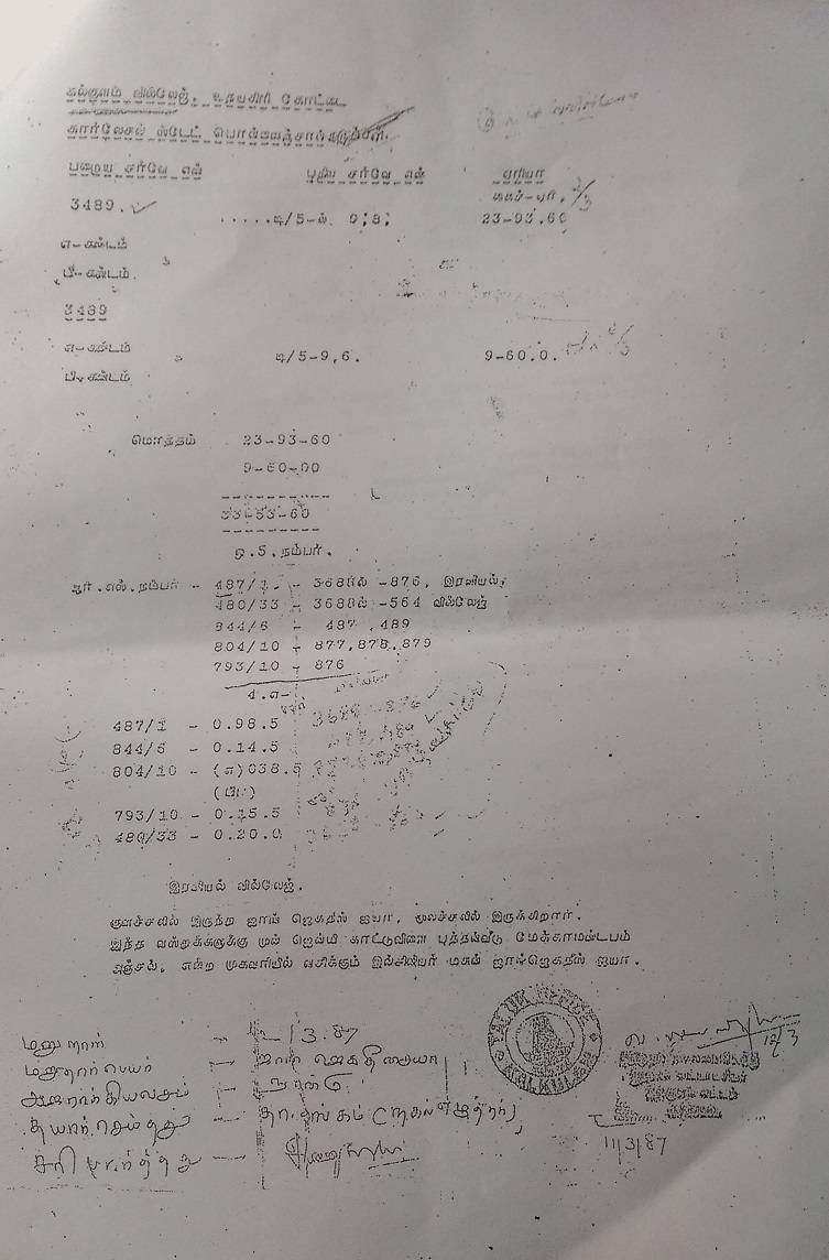 The revenue Records showing thet the Eraniel Palace under R.S.NO487 and the Puliyurkurichi fort, along with other properties belong to the pnonnanintha Karuppan, alias, Pon Anintha Perumal, great grandfather of Jagdish Ayya. the records remained intact till 2008.